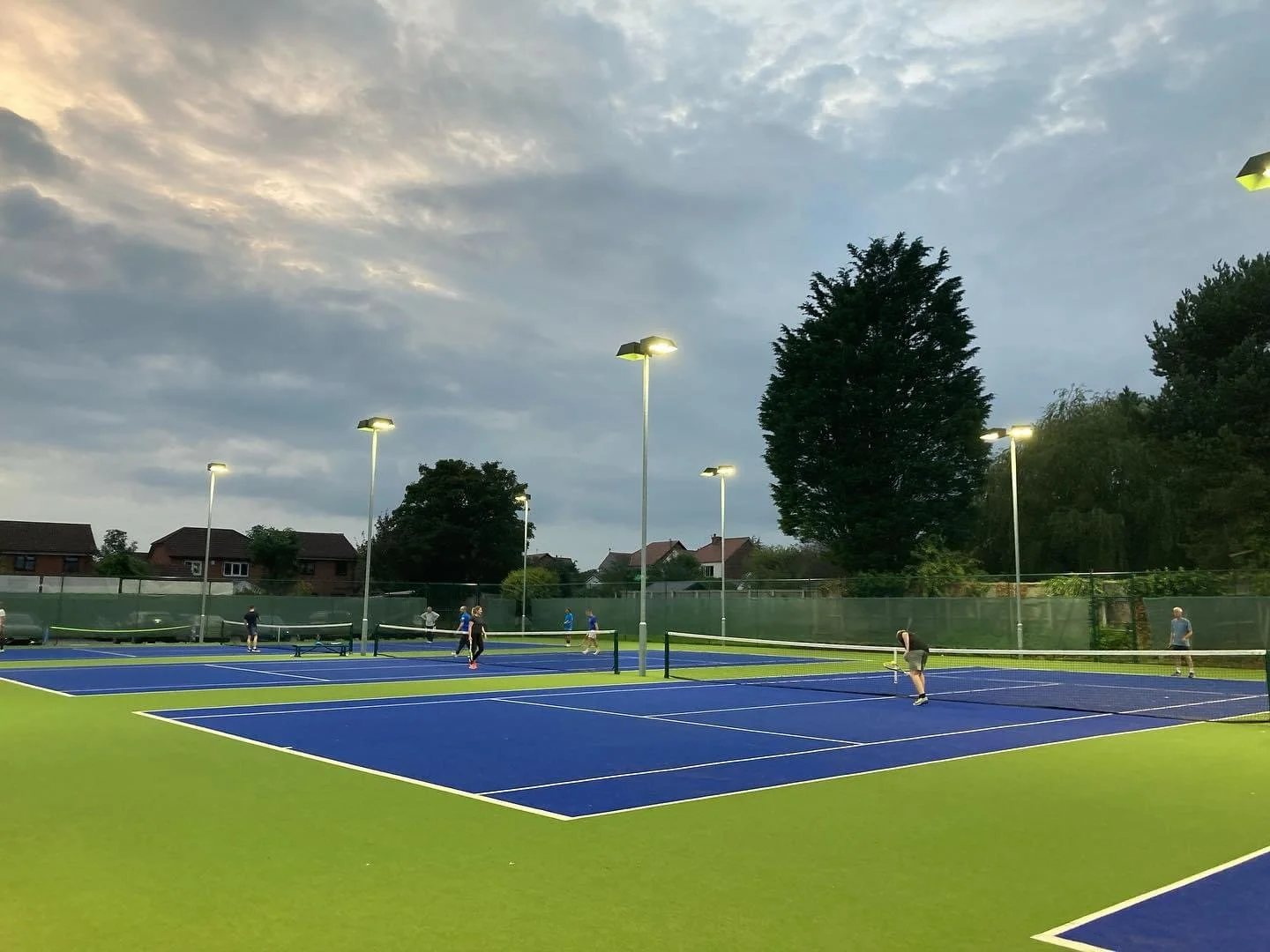 Six all-weather courts: blue and green Tiger Turf courts with floodlights built in 2022.